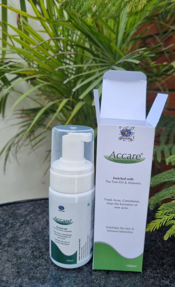 Accare Foaming Facewash is a cleansing face wash with aloe vera, salicylic acid, and glycolic acid, Niacinamied, Allantoin, Hyaluronic acid, SLS, and Amino acids which can help prevent acne and comedones and stop the formation of new acne. Regular use of the face wash may aid in reducing pore size, decrease the appearance of fine lines and pigmentation, and prevent acne formation. This face wash is enriched with lemon and orange extracts.
