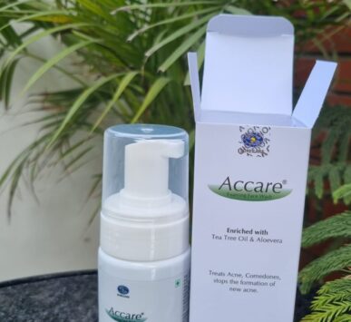 Accare Face Wash is a cleansing face wash with aloe vera, salicylic acid, and glycolic acid, which can help prevent acne and comedones.